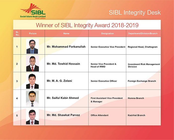 SIBL Integrity Award